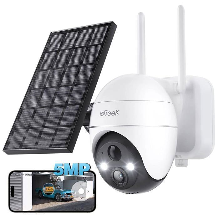 ieGeek 5MP Camera Surveillance WiFi Exterieure sans Fil Solaire, 15m Vision Nocturne Couleur, Detection Humaine PIR & Sirène Alarme, Caméra IP Batterie, Audio Bidirectionnel, Carte/Cloud/Alexa