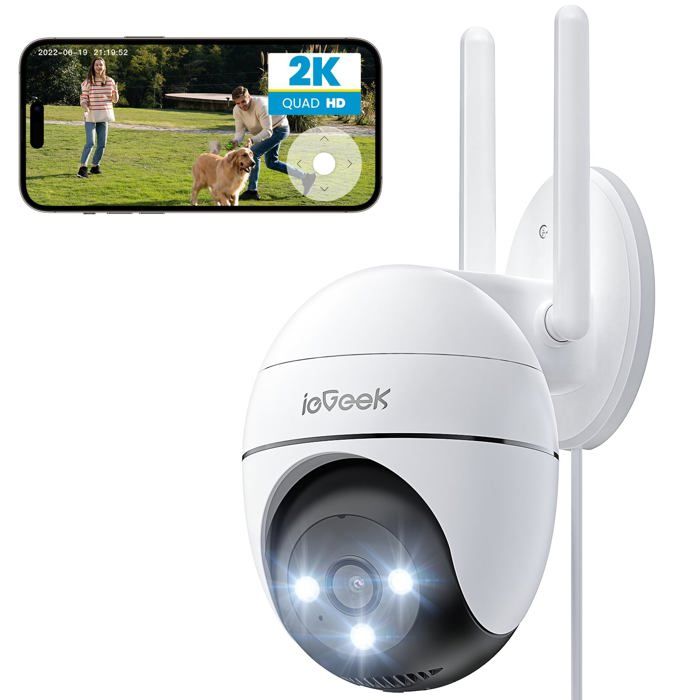 ieGeek 2K Camera Surveillance WiFi Exterieure 5Ghz /2.4G - 360° PTZ Camera Exterieur WiFi, Suivi de Mouvement, AI Détection, Audio Bidirectionnel, Vision Nocturne Couleur ZS-GQ2 (2 Pièces)