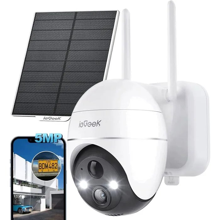 ieGeek Caméra Surveillance Extérieure 2K Solaire WiFi - Vision Nocturne, PIR, IP65, Sirène, Alexa.