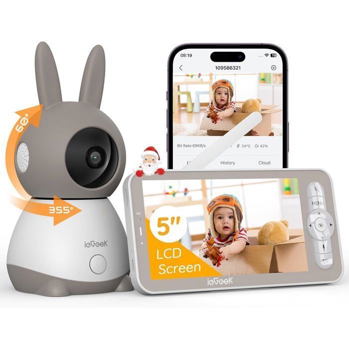 ieGeek Top 2K/5 HD écran Babyphone Caméra Bebe Baby Phone Vidéo connecté Smartphone Visiophone Bébé avec Vision Nocturne Audio