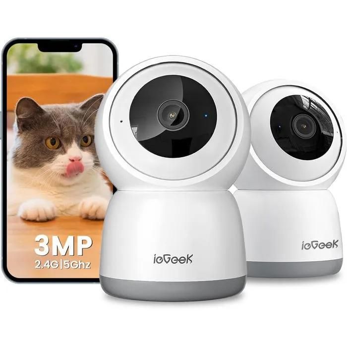 ieGeek 5MP Caméra Surveillance WiFi Interieur 2.4Ghz/5Ghz, 360°PTZ Caméra Interieur pour Bébé/Senior, Enregistrement 24H, Suivi Auto, Détection Humaine/Bruit, Alarmes(2PCS)