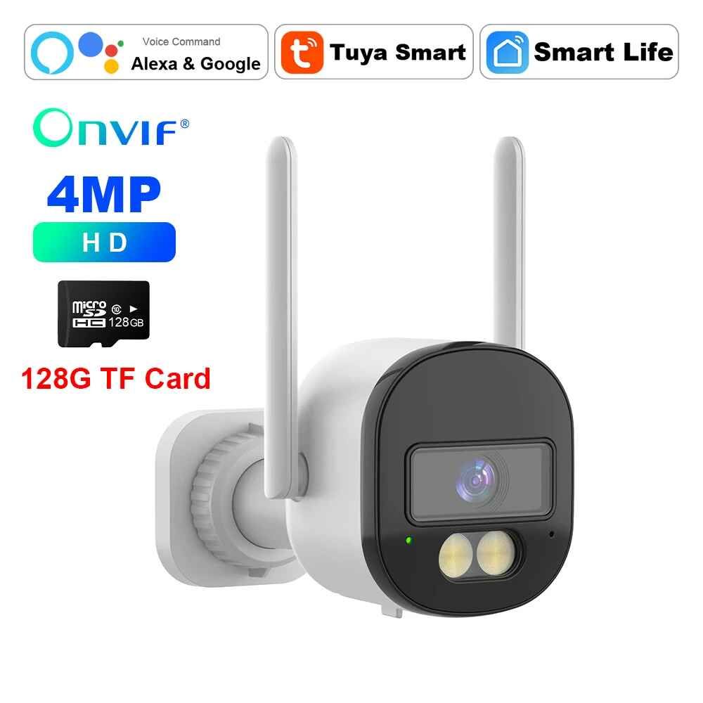 Tuya-Caméra Bullet Extérieure,4MP,2.4ghz,Wifi,Étanche,Onvif,Communication Bidirectionnelle,Mouvement,Poignées,Sirène,Alarme,Caméras IP avec Alexa Google - Type Alexa Cam 128G
