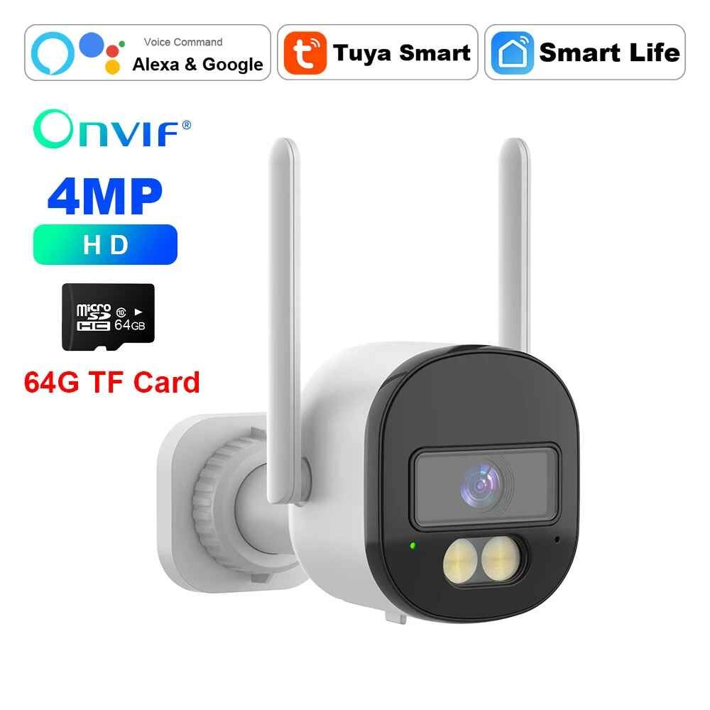 Tuya-Caméra Bullet Extérieure,4MP,2.4ghz,Wifi,Étanche,Onvif,Communication Bidirectionnelle,Mouvement,Poignées,Sirène,Alarme,Caméras IP avec Alexa Google - Type Alexa Cam 64G