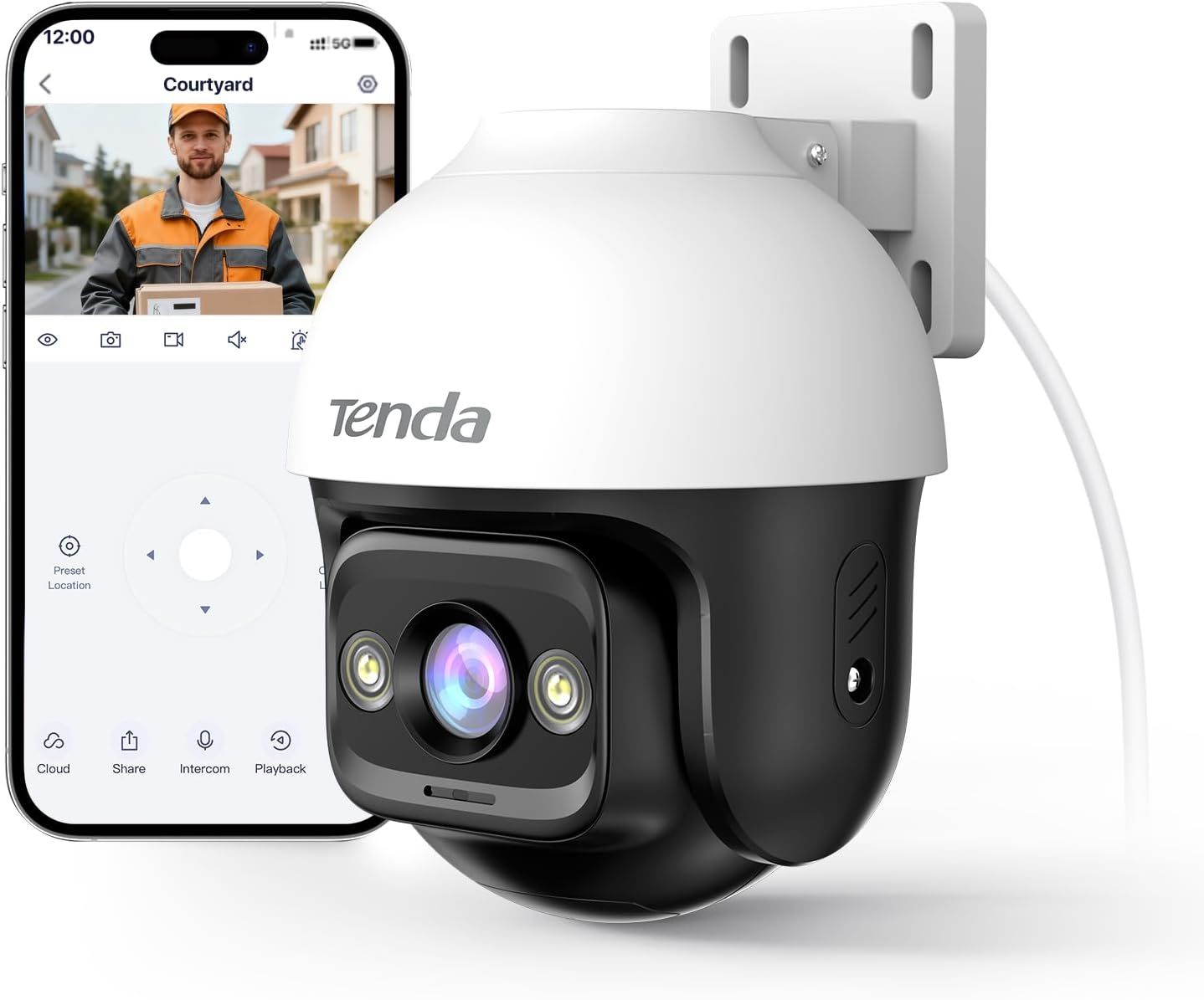 Tenda WiFi Outdoor Surveillance Camera CH3-360 IP Camera, 3MP with Colour Night Vision, Two-Way Audio, Motion Detection AI, ONVIF,