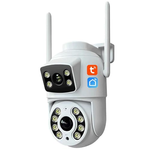 Zysfadc Caméra De Sécurité Wi-FI PTZ Tuya À Double Objectif (2MP+2MP), Caméra IP 2,4 Ghz avec Double Vue, Sirène, Projecteur, Audio Bidirectionnel, Surveillance CCTV, IP66,Camera