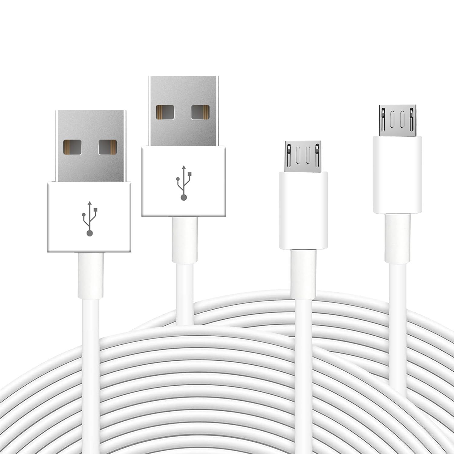 Itramax Lot de 2 câbles d'alimentation Micro USB 6M,Cordon Charge Caméra Sécurité Domicile Plat Chargeur pour Wyze Cam Pan,Yi Cam, Nest Cam,Blink XT XT2 Mini,Furbo Dog, Arlo Q, Zmodo,Netvue,Xbox One