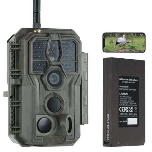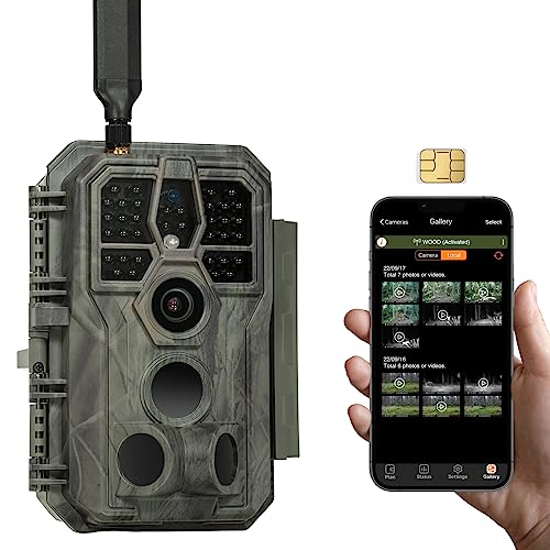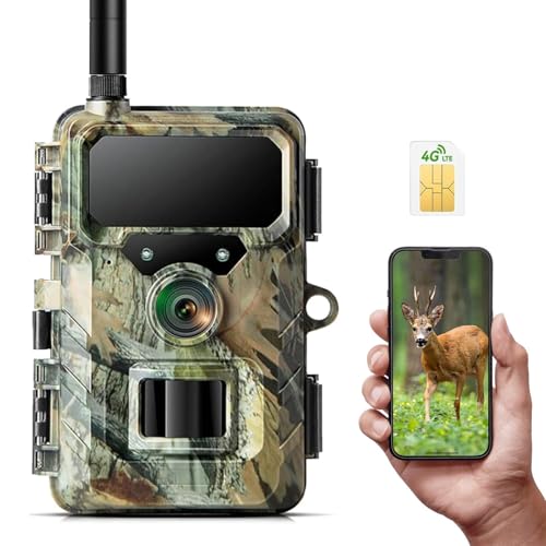 Caméra de Chasse 4G 36MP 4K Vidéo, Lithium 8000mAh, Camera de Chasse Vision Nocturne avec App Gratuite Carte SIM, Vidéo en Temps Réel, Détecteur de Movement, 940nm Infrarouge LEDs, IP66 Étanche