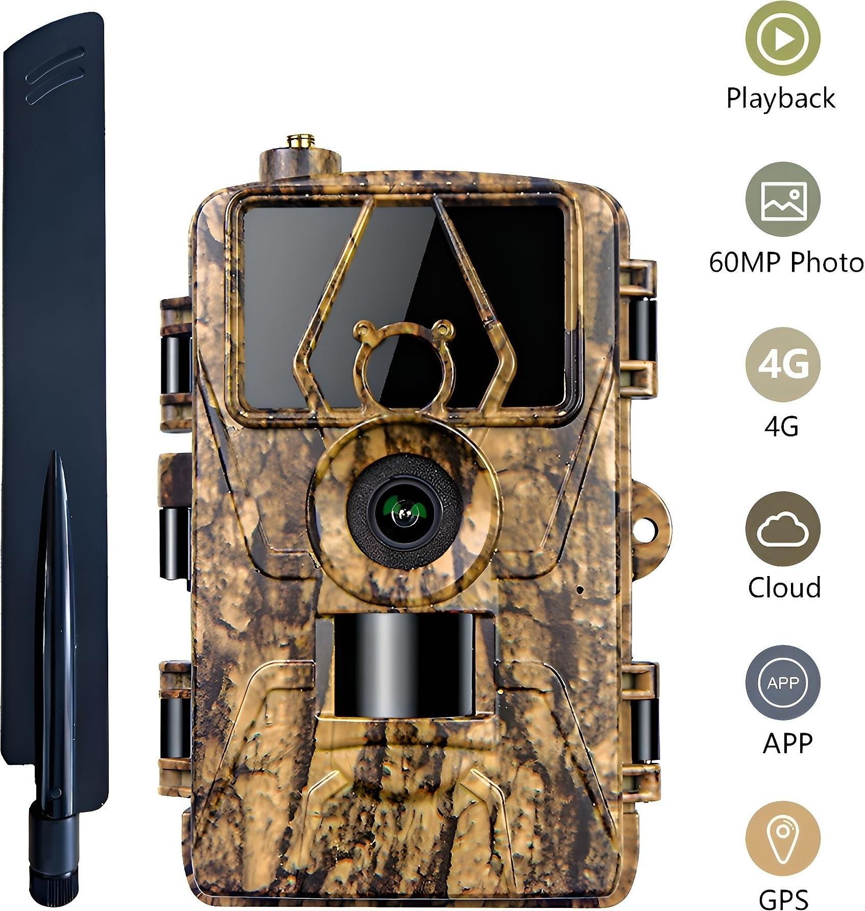 VanBangTec Camera de Chasse 4G APP, 120MP 4K Caméra Chasse avec Carte SIM, Envoi de Photos, Vidéo en Direct, Piege Photographique Nocturne 850 nm IR LED, Caméra de Chasse avec Détecteur de Mouvement