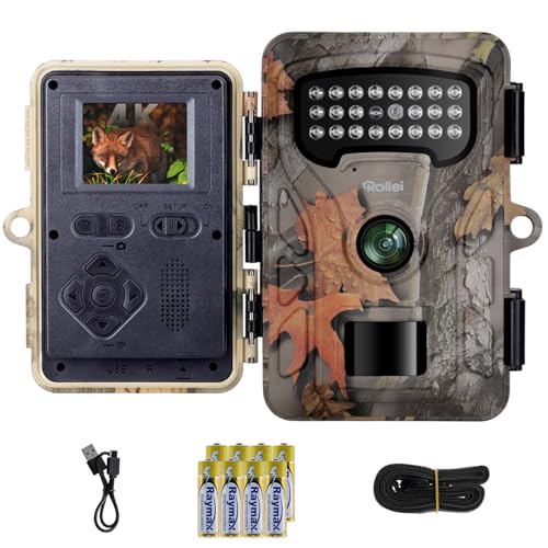 Rollei Caméra de Chasse HD-30, 48MP 4K Camera Vision Nocturne avec Détecteur de Mouvement et Batterie Rechargeable Écran IPS 2'' IP54 Camera Chasse Infrarouge Temps de Déclenchement de 0,4S