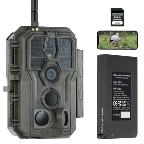 RecorCam Caméra de Chasse WiFi Bluetooth App, 36MP 4K Camera Chasse avec Vision Nocturne Infrarouge, Vitesse de Déclenchement 0.2s, IP66 Étanche Piege Photographique, Carte Mémoire 32GB (WiFi812Pro)
