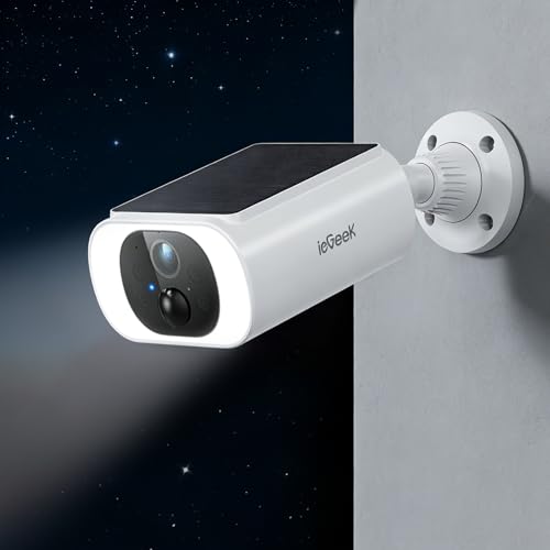 ieGeek Camera Surveillance WiFi Exterieure sans Fil Solaire - 2K Caméra avec Panneau Solaire Intégré, Batterie 5200mAh, Vision Nocturne Couleur, Détection IA, Alarme, Audio Bidirectionnel, IP66, S1