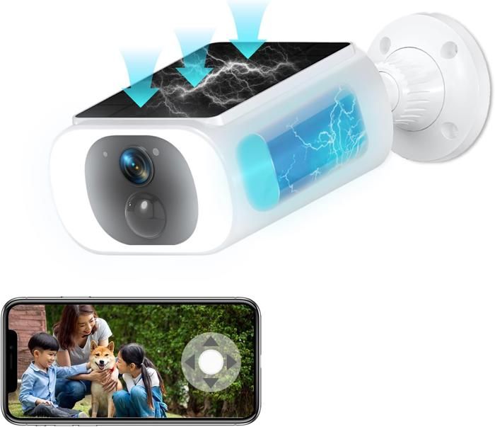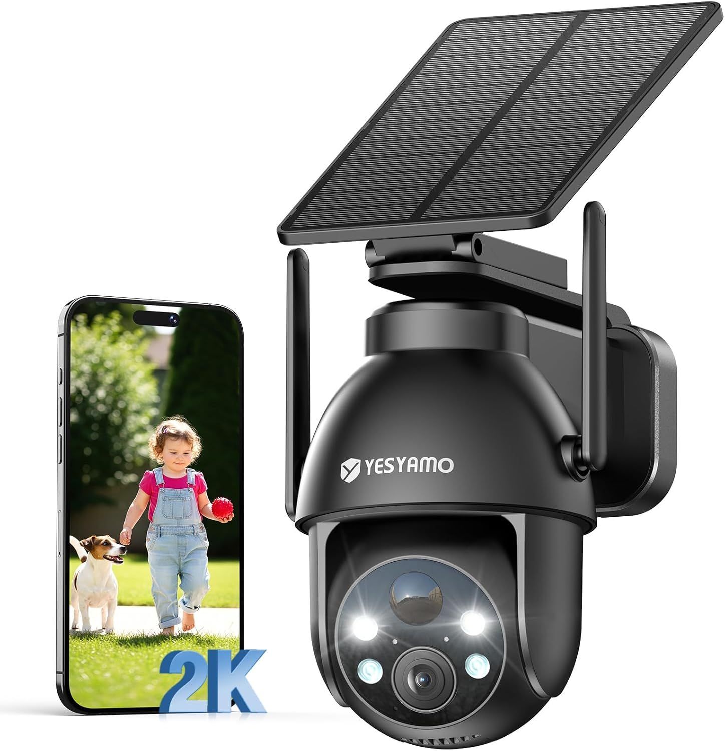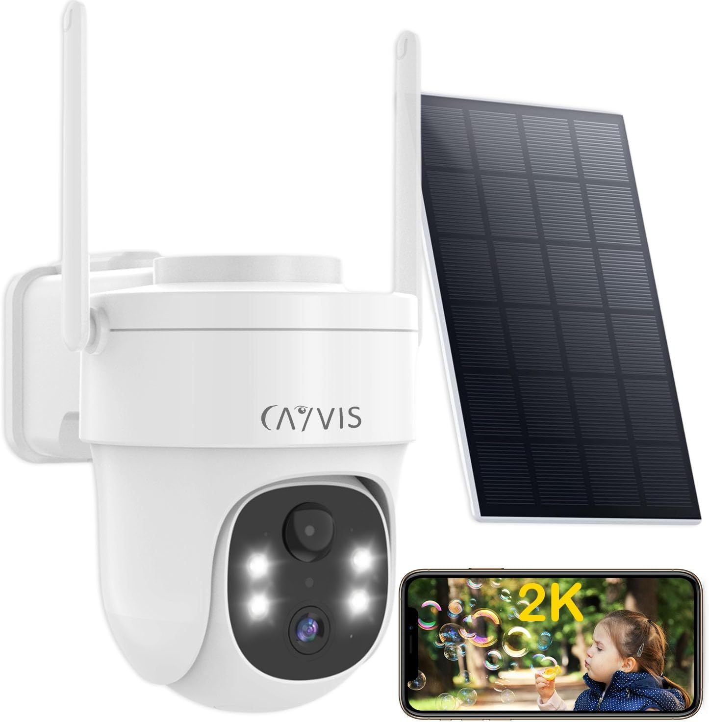 SUBZONAL-Camera Surveillance WiFi Exterieure sans Fil - 2K Camera Exterieur Batterie Panneau Solaire Intégré Étanche, PIR Détection Mouvement, Sirène et Vision Nocturne Couleur, Compatible avec Alexa