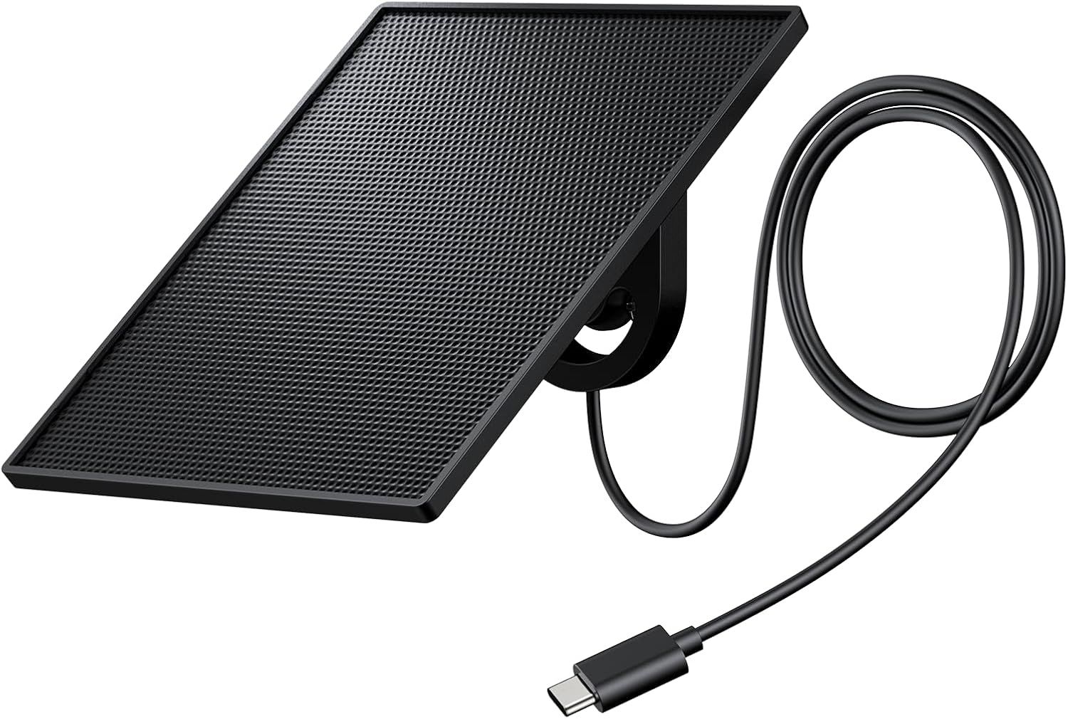 Chargeur de Caméra à Panneau Solaire 4W Haute efficacité pour Micro USB C, Alimentation Stable, étanche IP65, Fonctionnement Fiable, Installation Facile (Noir)