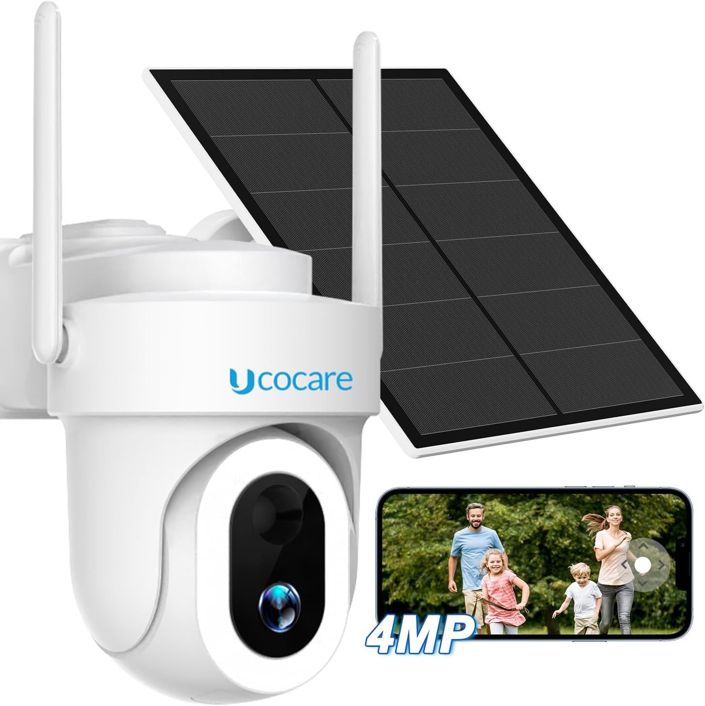 2 Pièces 2K Camera Surveillance Wifi Sans Fil - Ip66 Camera Exterieur Solaire, Panneau Solaire Integree, Vision Nocturne Couleur, Pir Détection S1