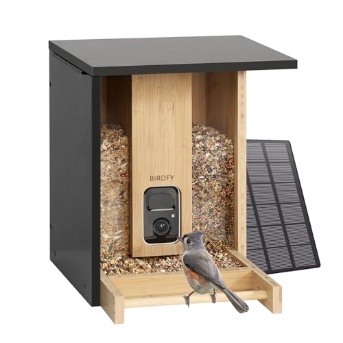 Birdfy Mangeoire à Oiseaux en Bambou avec Caméra et Panneau Solaire, Mangeoire extérieure Caméra d'observation des Oiseaux avec Vision Nocturne Capture Auto Images/Vidéos Notification Instantanée
