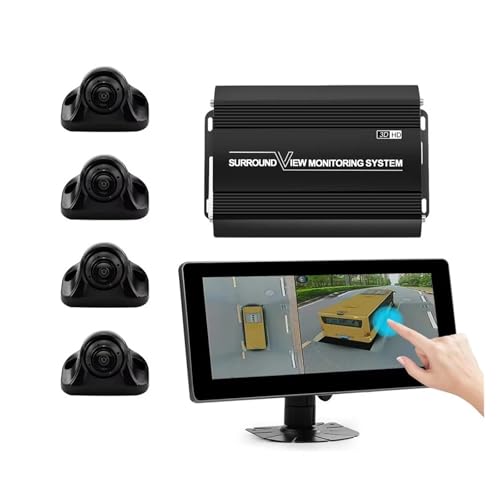 Camera Auto Caméra Panoramique 360° pour Bus, Camion, Camping-Car, Système De Voiture, Enregistreur 3D 1080p avec Écran Tactile 10,25 Pouces Caméra Recul Voiture(Noir)
