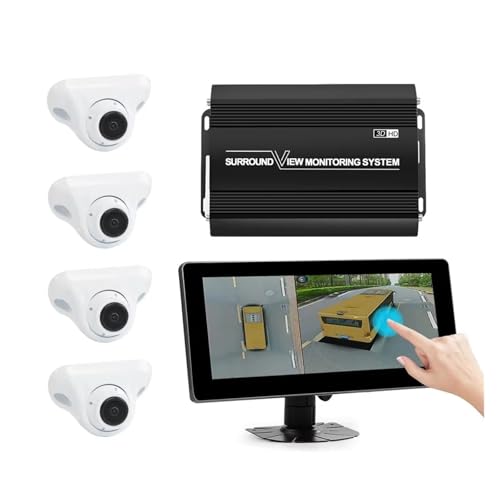 Camera Auto Caméra Panoramique 360° pour Bus, Camion, Camping-Car, Système De Voiture, Enregistreur 3D 1080p avec Écran Tactile 10,25 Pouces Caméra Recul Voiture(Blanc)