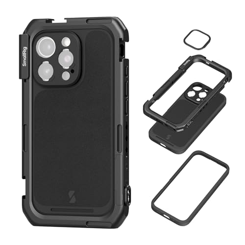 SMALLRIG Phone Vidéo Cage pour iPhone 16 Pro Max, Cage avec Phone Case en T-Mount Lens Backplate, Support pour MagSafe et de Caméra pour téléphone Portable à dégagement Rapide pour Le Vlogging - 4827