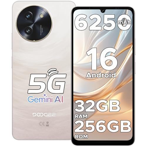 DOOGEE Note59Pro Android16 5G Smartphone, 32 Go RAM+256 Go ROM/TF 2TB, Batterie 6250mAh, 120Hz+6.75" HD+, UNISOC T8200 Telephone Portable, Caméra 16MP 4K, NFC/Dual SIM/Face ID/Widevine L1/WiFi