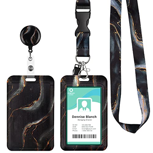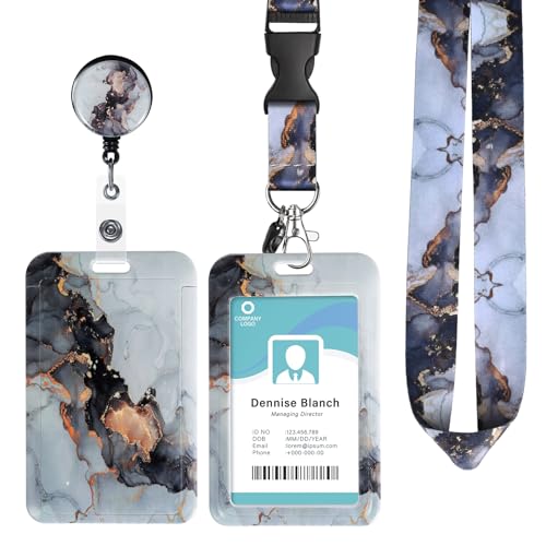 Porte Badge avec Cordon Tour de Cou Porte-cartes Swivel Lobster Clasp avec Lanières Rétractables pour Porte Badges d'Identification Clés Caméra Téléphone Portable (Marbre)
