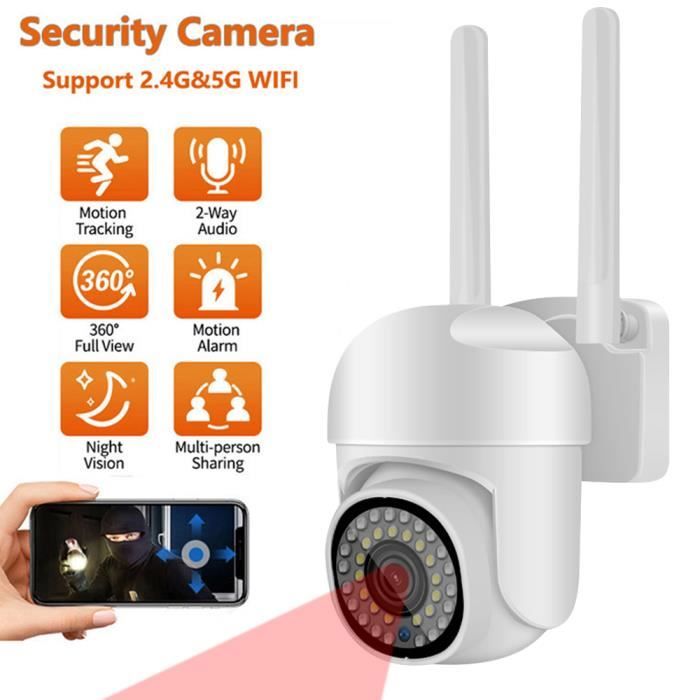 Camera surveillance wifiCaméra réseau PTZ couleur WiFi sans fil double bande 2.4G + 5G 2MPvision nocturne à 355°IP661080pH.264