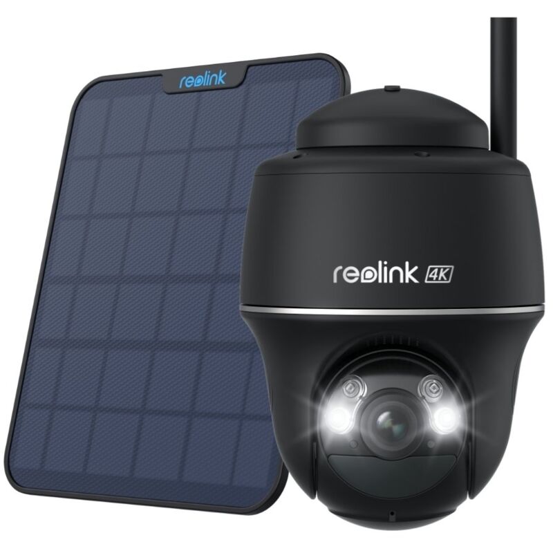 Reolink Caméra de Surveillance Argus Noir et Panneau Solaire 4K 8MP Sans Fil Panoramique et Inclinable avec Projecteurs