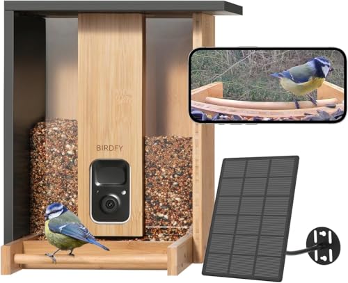 Birdfy Mangeoire à Oiseaux en Bambou avec Caméra et Panneau Solaire, Mangeoire extérieure Caméra d'observation des Oiseaux avec Vision Nocturne Capture Auto Images/Vidéos Notification Instantanée