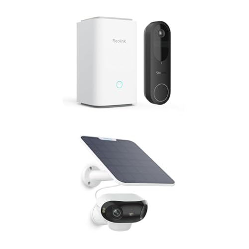 Reolink Bundle of Sonnette Vidéo 2K à Batterie avec Home Hub + Argus 4 Pro Caméra Solaire 4K WiFi, Vision Nocturne ColorX, Vue 1:1 & 180°, Audio, Détection Personne/Véhicule/Animal, Stockage Local