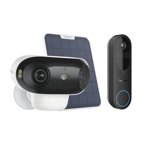 Bundle of Reolink Caméra Solaire 4K Argus 4 Pro + Sonnette Vidéo 2K sans Fil à Batterie, Vision Nocturne ColorX, Vue 180°/1:1, Wi-Fi 2,4/5GHz, Détection Personne/Véhicule/Colis, Audio, sans Abonnement