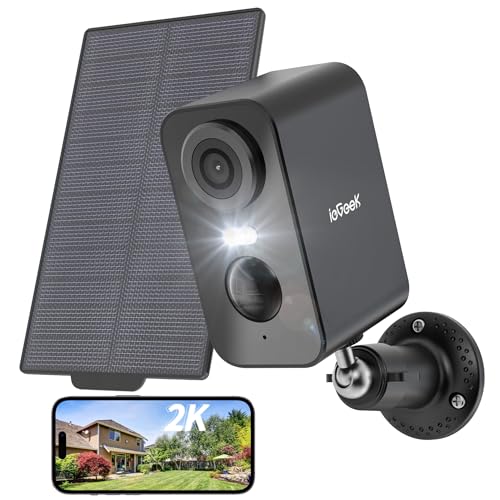 ieGeek 2K Camera Surveillance WiFi Exterieure sans Fil Solaire, Caméra Batterie, Vision Nocturne Couleur, AI & PIR Détection Mouvement, Audio Bidirectionnel, Étanche IP65, Alexa, ZS-GX3S, Noir
