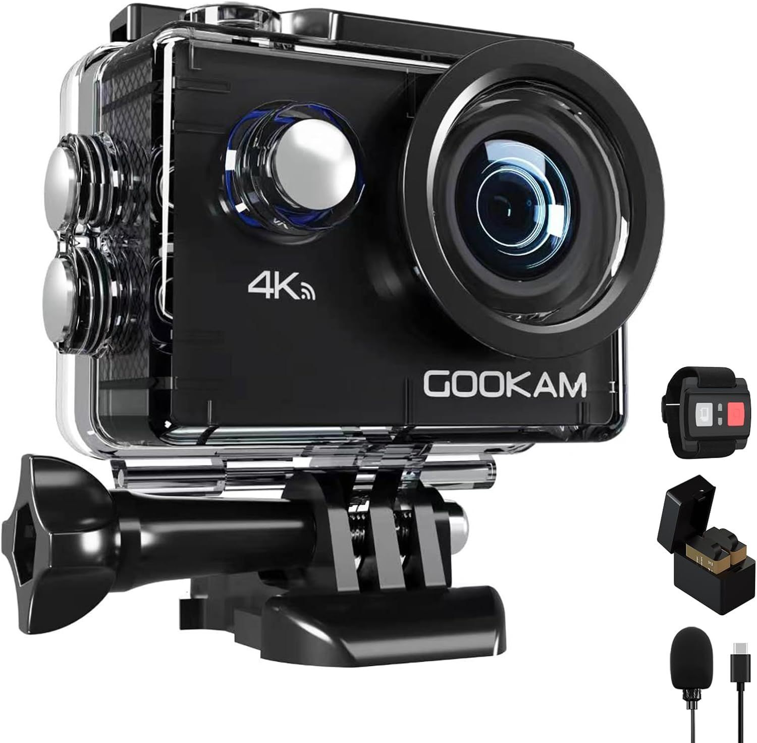 GOOKAM GO7 Caméra Sport 4K Ultra HD WiFi 20MP, Double Écran, Étanche 40M, Grand Angle 170°, Télécommande 2.4G, 2 Batteries 1350mAh et Kit d’Accessoires Complet