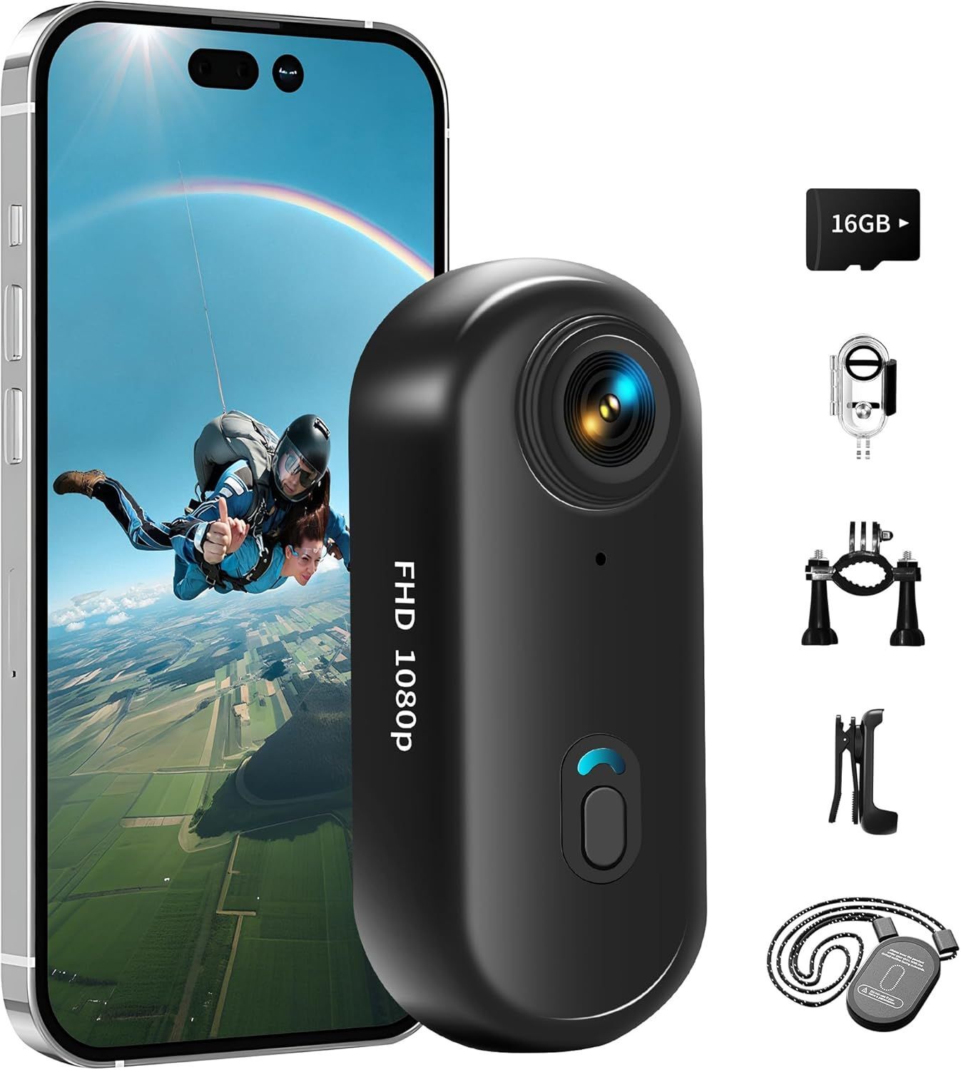 Pyltha Caméra Action Sport 1080P, Caméra Portable avec Clip Arrière Magnétique, Images Claires et Nettes - Léger, Facile à Utiliser, pour Animaux et Activités Extérieures