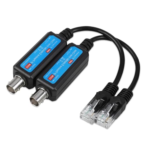 UUNPODDO 1 Paire d'extension de récepteur émetteur coaxial réseau IP Passif, émetteur réseau pour caméra IP NVR, Extension 10/100 Mbps 1 CH sur coaxial avec Protection Contre Les