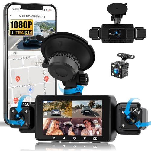 SIXWIN Dashcam 4 Canaux 1080P – Caméra Voiture 360° avec 4 Caméras,1080P+3 * 480P,3'' Écran WiFi&App, Vision Nocturne, G-Sensor,Surveillance Stationnement 24/7, Enregistrement en Boucle,