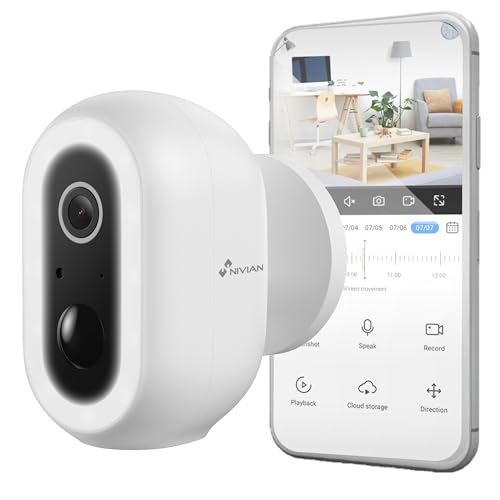 NIVIAN Caméra de Surveillance WiFi extérieure 2K avec Batterie | Caméra de sécurité PIR avec détection Humaine, Vision Nocturne Couleur, Audio bidirectionnel, sirène et LED, App Smart 04-Bat