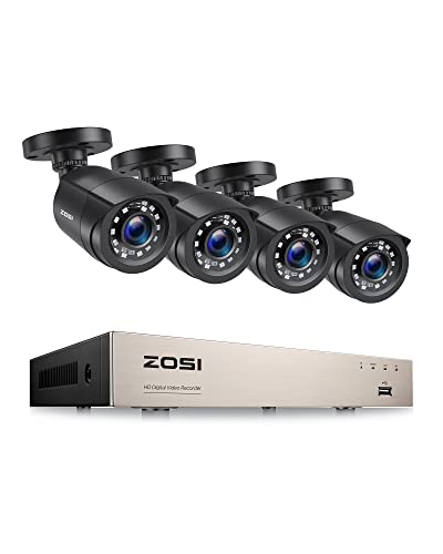ZOSI H.265+ Kit Caméra de Surveillance avec 8CH 5MP Lite DVR, 4 Caméra de Sécurité Extérieure IP66, Vision Nocturne 24m, Détection de Mouvement Alerte par Email, App Gratuite, Disque Dur Non fourni