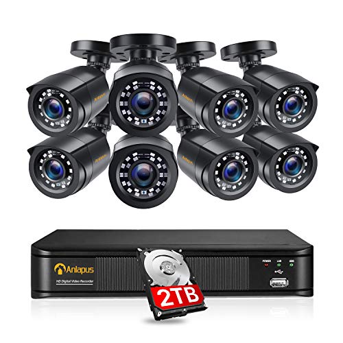 Anlapus H.265+ 8CH 1080P 2TB Kit Caméra de Surveillance Extérieure 2MP avec DVR Enregistreur 1080p, Vision Nocturne 20M Alerte Instantanée & APP Gratuite Accès à Distance