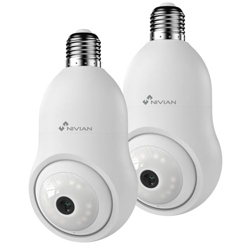 NIVIAN - Caméra de Surveillance WiFi - 2K Mouvement 360° - Audio bidirectionnel - Reconnaissance et Suivi des Humains - Vision Nocturne - Compatible avec Alexa, Google, Tuya App (2X Cameras)