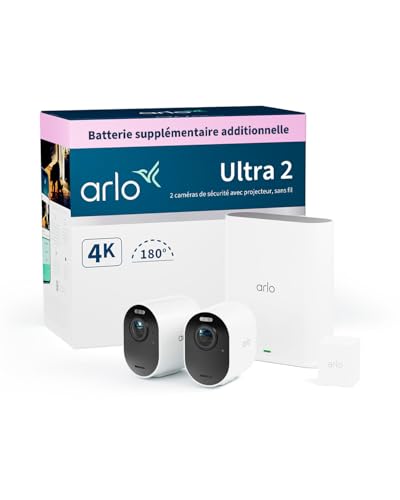 Arlo Ultra 2 Camera Surveillance WiFi Exterieure Sans Fil, 4K UHD, 180° Vision Nocturne, Sirène, Détection Mouvement, Audio Bidirectionnel, SmartHub Incluse, Inclus 90 Jrs Arlo Secure, 2 Caméras Blanc