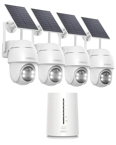 COOAU 4MP Camera Surveillance WiFi exterieure sans Fil - 365 Jours avec Panneau Solaire - Base + 4 Caméras - 2.5K | 64 Go Stockage Local | 360° Panoramique | Zéro frais mensuel | Compatible avec Alexa