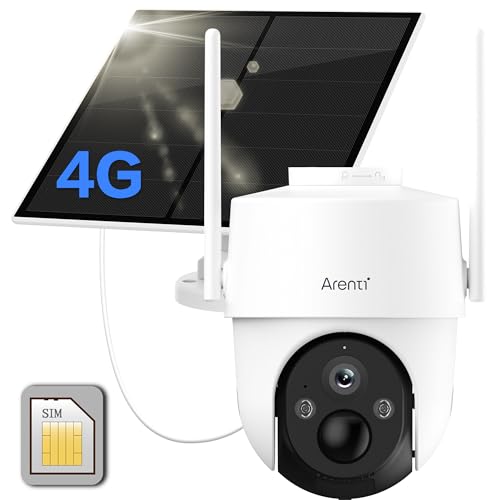 ARENTI 4G LTE Caméra Surveillance Solaire avec Carte SIM, Batterie et Panneau Solaire, Caméra Extérieure sans Fil, 2K PTZ Caméra IP, Audio Bidirectionnel, Vision Nocturne Couleur, Détection IA, AOV