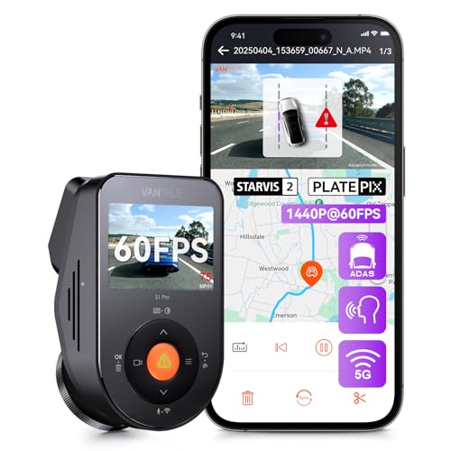VANTRUE S1 Pro 2.5K STARVIS 2 HDR Dashcam Voiture Avant, 5GHz WiFi GPS Dash Camera Avant, Surveillance LTE Optionnel, ADAS, Contrôle Vocal en Français, Mode Parking Pré-enregistrement 15s Support 1 To
