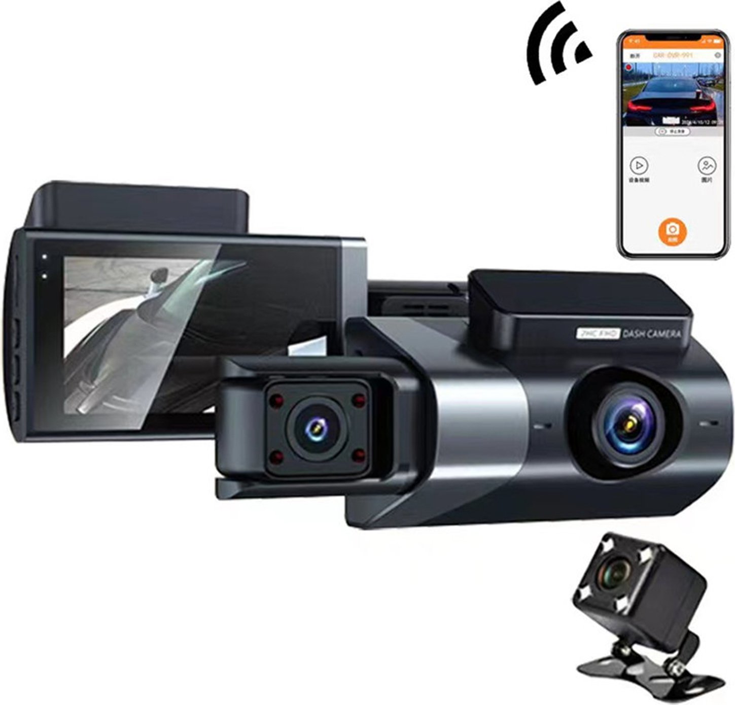 Dashcam trois caméras, HD 1080P, DVR de voiture, caméra de surveillance de voiture, ultra grand angle 170°, vision nocturne infrarouge, surveillance de parking 24 heures sur 24