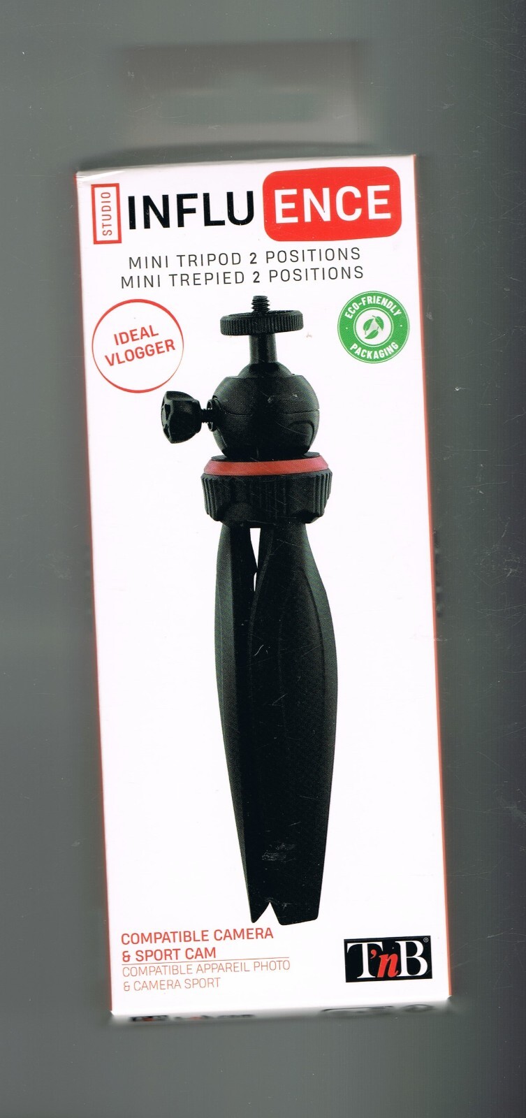 MINI TRIPOD 20 CM 2 POSITIONS COMPATIBLE CAMERA & SPORT CAM - T'nB - NEUF