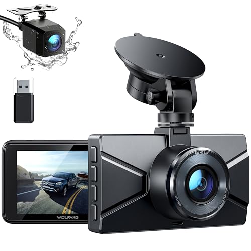 WOLFANG 2.5K Dashcam Voiture Avant Arrière, 1440P+1080P FHD Camera Embarquée Voiture, IPS 3" Camera Voiture Grand Angle de 170°+140°, G-Capteur, WDR, 24H Mode Parking, Enregistrement en Boucle