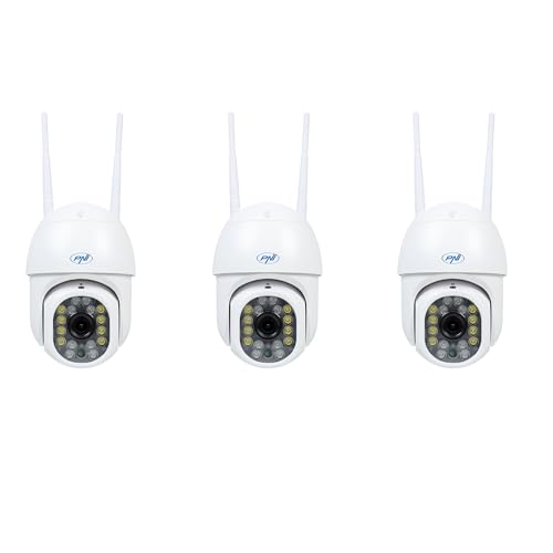 PNI Kit 3 pièces IP440 WiFi PTZ Caméra de vidéosurveillance sans Fil 4MP Zoom numérique Fente Micro SD Autonome Alarme de détection de Mouvement Suivi de Mouvement