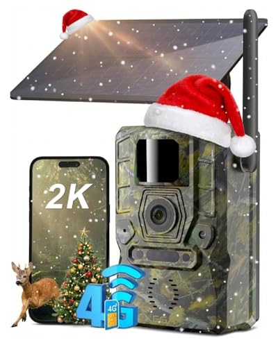 Xega 4G Caméra de Chasse Solaire avec Carte SIM,2K Camera Extérieure Surveillance de la Faune,Accès à Distance,Nocturne Infrarouge Invisible,Autonome sur Batterie,Détection Instant Alert (Non WiFi)