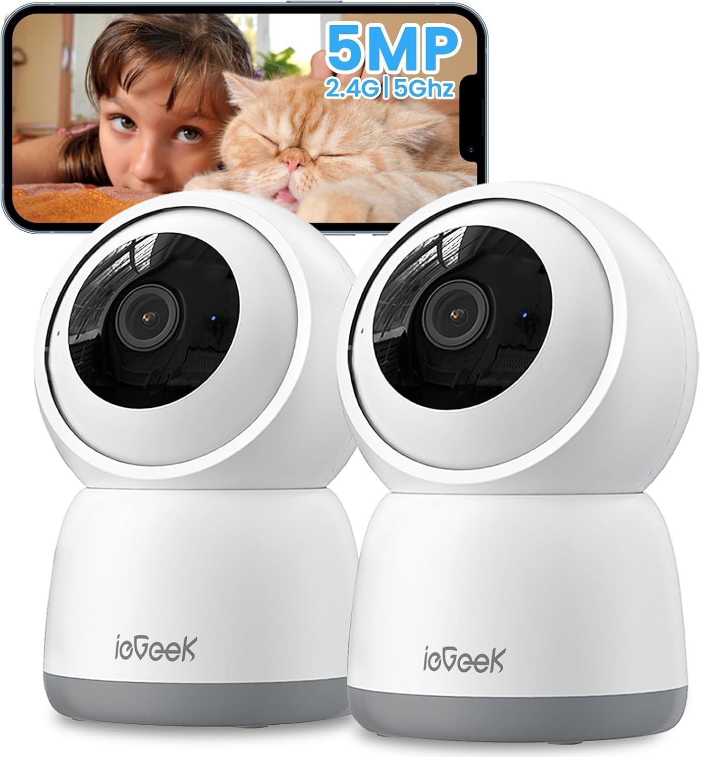 ieGeek 5MP Caméra Surveillance WiFi Interieur 2.4Ghz/5Ghz, 360°PTZ Caméra Interieur pour Bébé/Senior, Enregistrement 24H, Suivi Auto, Détection Humaine/Bruit, Alarmes(2PCS)