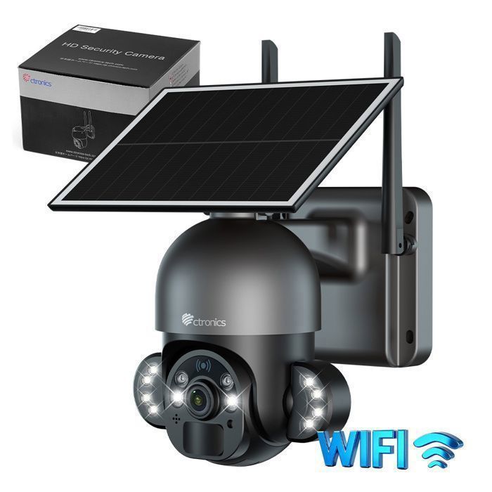 Ctronics 2K Caméra Surveillance WiFi Solaire PTZ Vision Nocturne Couleur PIR Détection Humaine Cloud/Carte TF