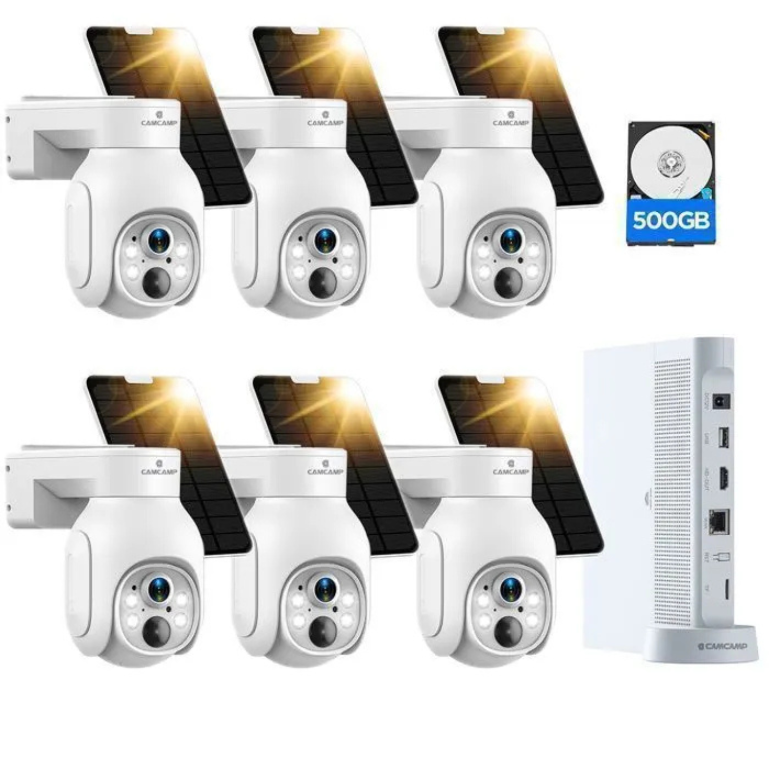 Camcamp Kit Camera Surveillance WiFi Solaire avec 10" Moniteur et 500Go HDD, 10CH NVR 2K Video Surveillance sans Fil, Pas Besoin de WiFi, Vision Couleur, Mouvement Détection,2-Voies Audio,Sortie HDMI